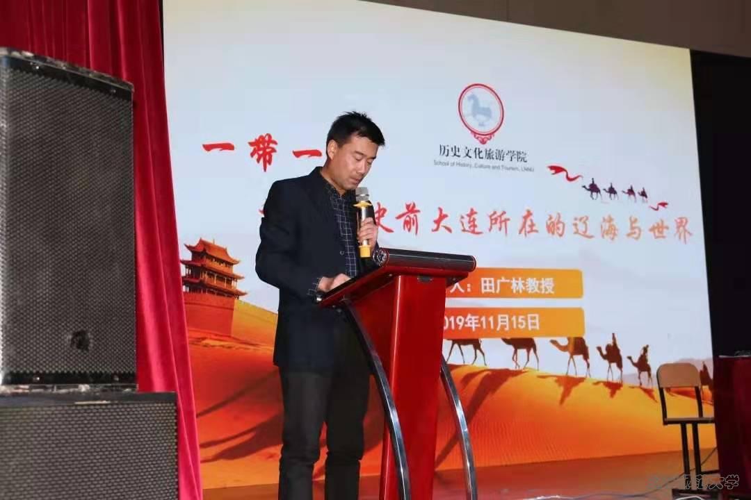 本次“日新讲坛”首场讲座邀请历史文化旅游学院原院长,现任辽宁省红山文化与中华文明协同创新中心主任,博士生导师田广林教授,以“一带一路—视域下史前大连所在的辽海与世界”为题,为全院师生带来一场精彩的学术盛宴。田广林教授从史前文化、人形造像、玉石杖首、石质容器、石棚墓葬等多个观察视角,分析了红山文化所见欧亚大陆的东西互动与南北交流,讨论了红山文化时期的古代中国与外部世界存在的文化上的互动与交流。